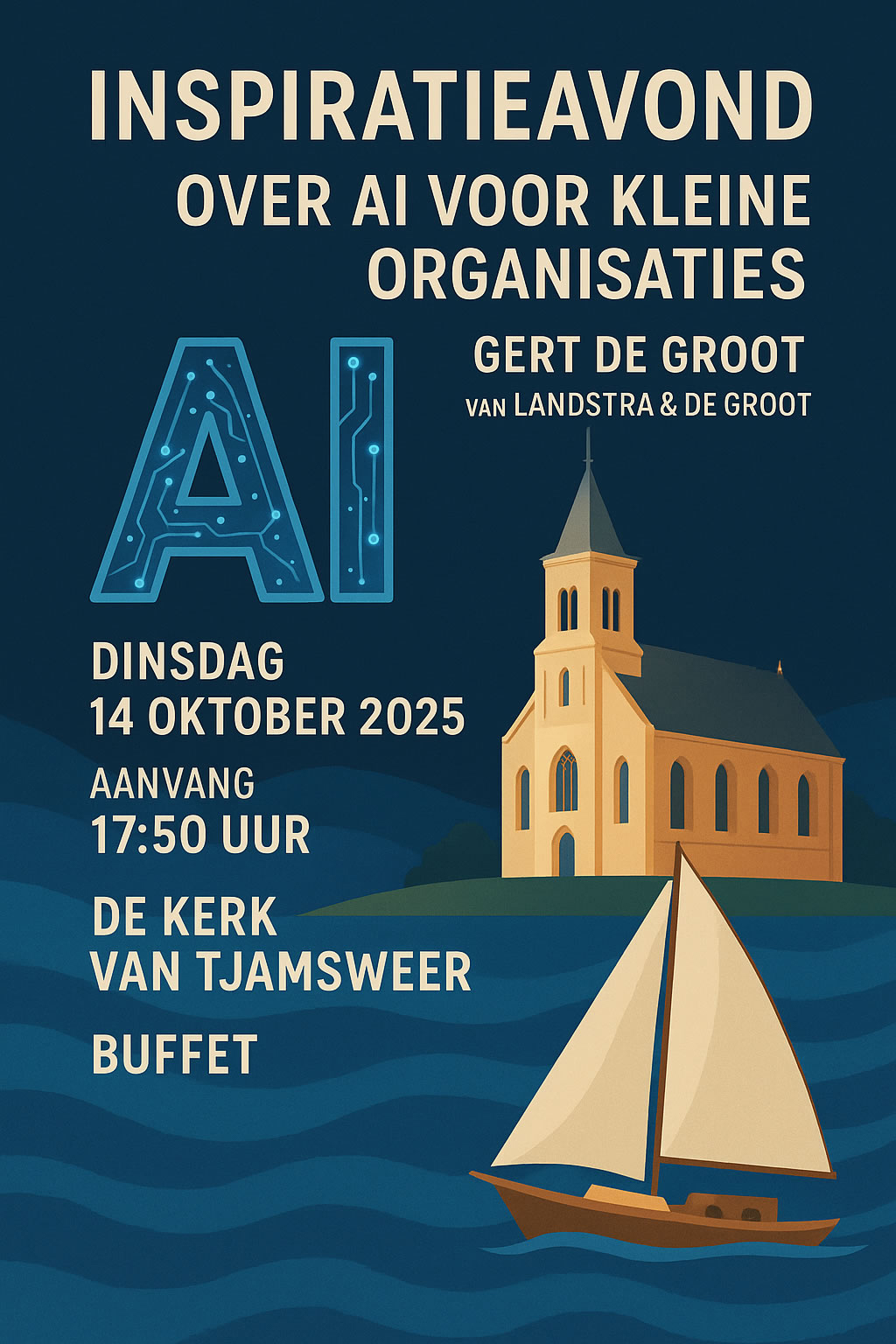 Deze avond worden wij getrakteerd op een lezing van Gert de Groot van L&G Appingedam over kunstmatige intelligentie voor het kleine MKB en kleinere organisaties.